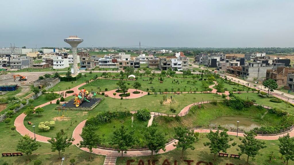 Faisal Town spans approximately 4,735 Kanal, offering ample space for residential and commercial development.