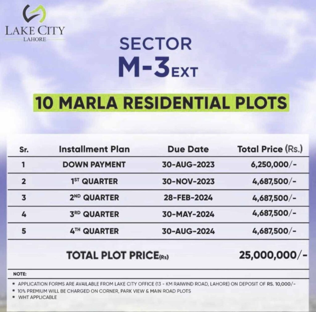To book a plot, visit the official Lake City website or contact the sales office with required documents (CNIC/NICOP copies, passport-sized photographs, booking form) and make the down payment.