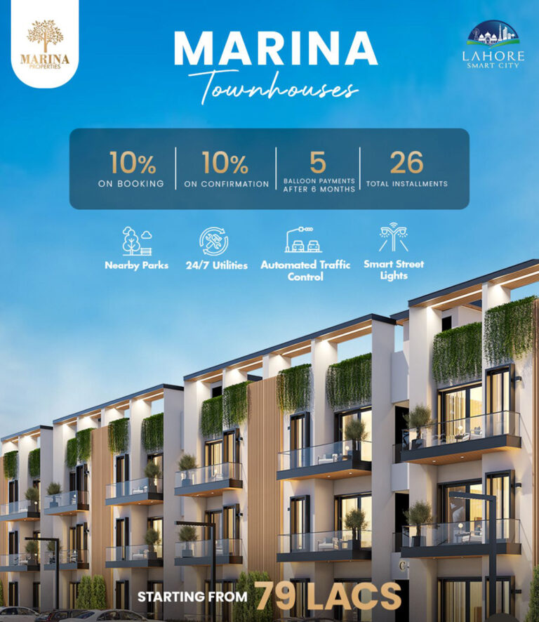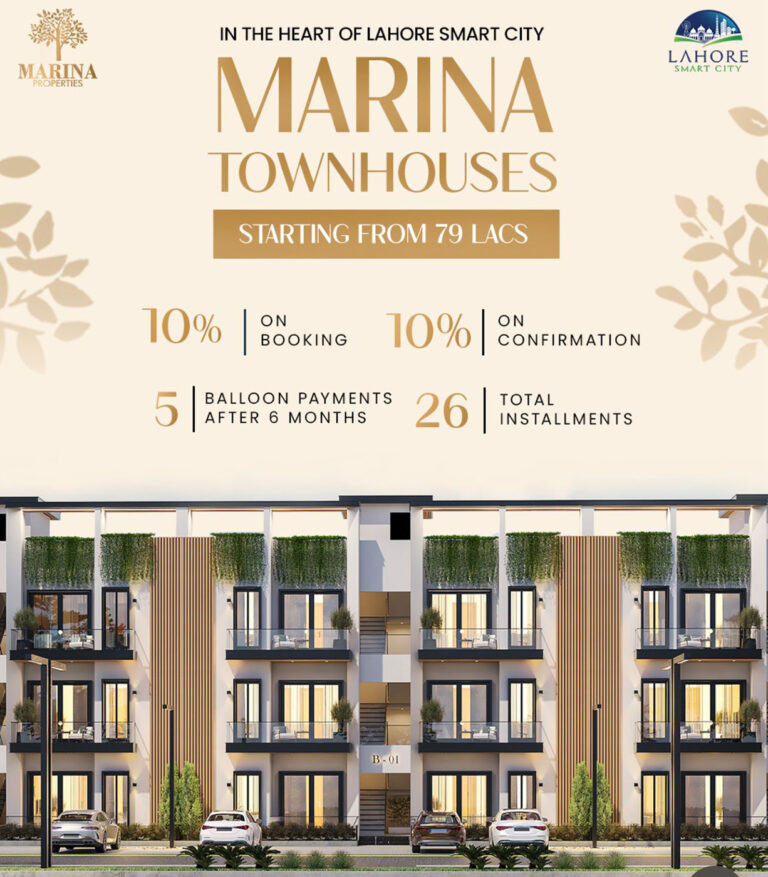 Step into a world where elegance meets innovation. We are proud to announce the exclusive launch of Townhouses by Marina Properties (Developers of Tricon Village & Tricon Tower) at Lahore Smart City — a landmark destination for those who aspire to live beyond the ordinary.